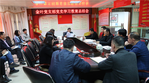 1月28日下午,市金叶发展有限公司召开党史学习教育总结会议,深入学习贯彻中央、省委、市委和市投控集团党委党史学习教育总结会议精神,全面总结金叶公司党史学习教育成效和经验,巩固拓展党史学习教育成果,不断推动党史学习教育走向深入,扎实做好“党史教育”后半篇文章。