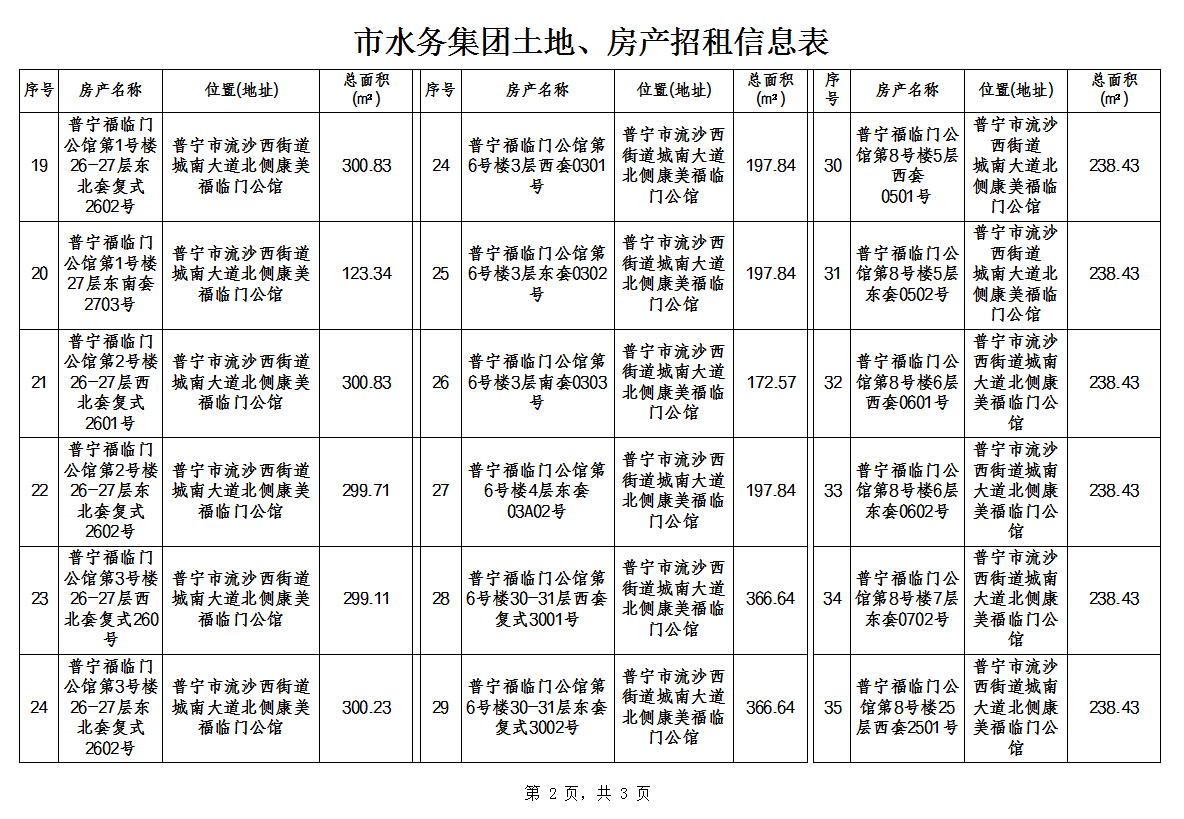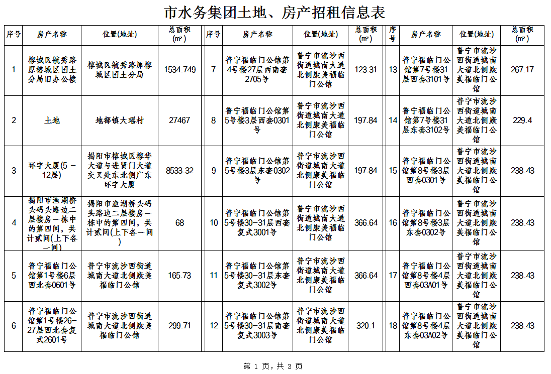 市水务集团土地、房产招租信息
