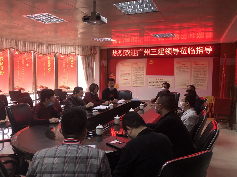 2月26日上午,广州市第三建筑工程有限公司董事长周岳峰一行来我司考察,对我司建设用地合作开发甲级写字楼项目进行前期深层次的洽谈交流。